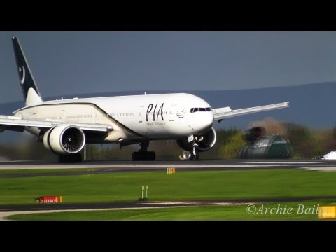 Pakistan International Airlines (PIA) 777-300ER Land at Manchester Airpo...